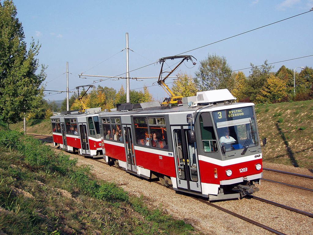 Fotografie ČKD DS T6A5 1203 DPMB | ČKD DS T6A5 1204 DPMB | Brno-Bystrc, Vejrostova | Fotogalerie BMHD