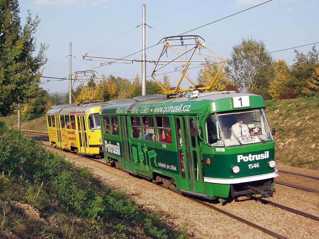 Fotografie ČKD Tatra T3 1546 DPMB | ČKD Tatra T3 1547 DPMB | Brno-Bystrc, Vejrostova | Fotogalerie BMHD