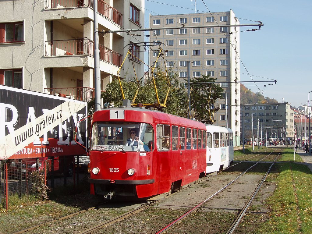 Fotografie ČKD Tatra T3G 1605 DPMB | ČKD Tatra T3G 1617 DPMB | Brno-Staré Brno, Veletržní | Fotogalerie BMHD