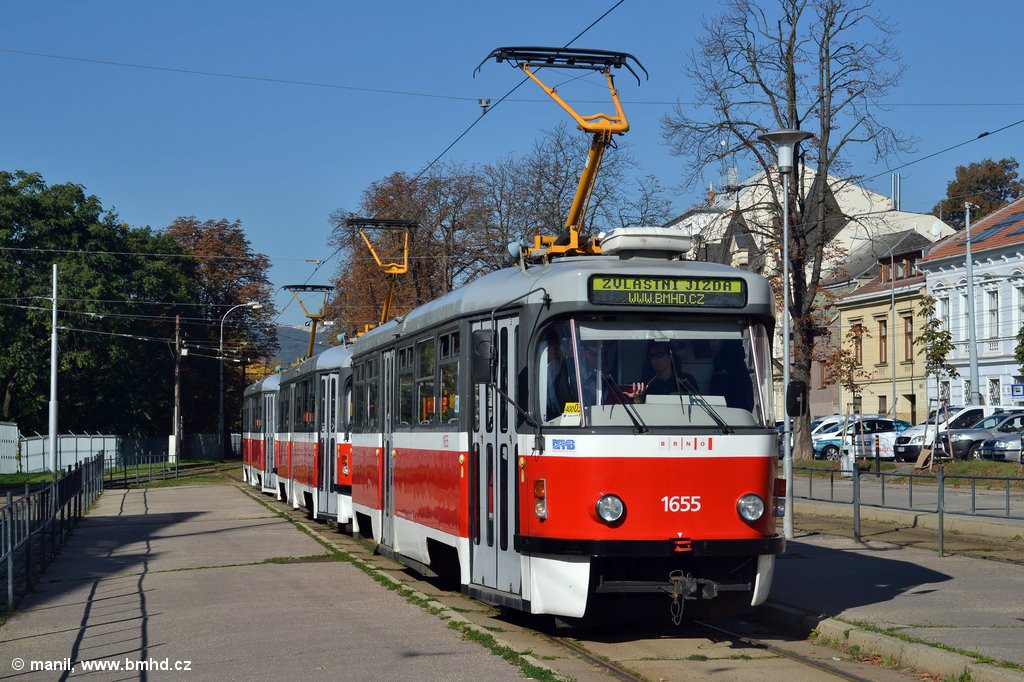 Souprava 3x T3R.PV 1655+1657+1658 vypravená při příležitosti oslav 10 let našich stránek BMHD.cz