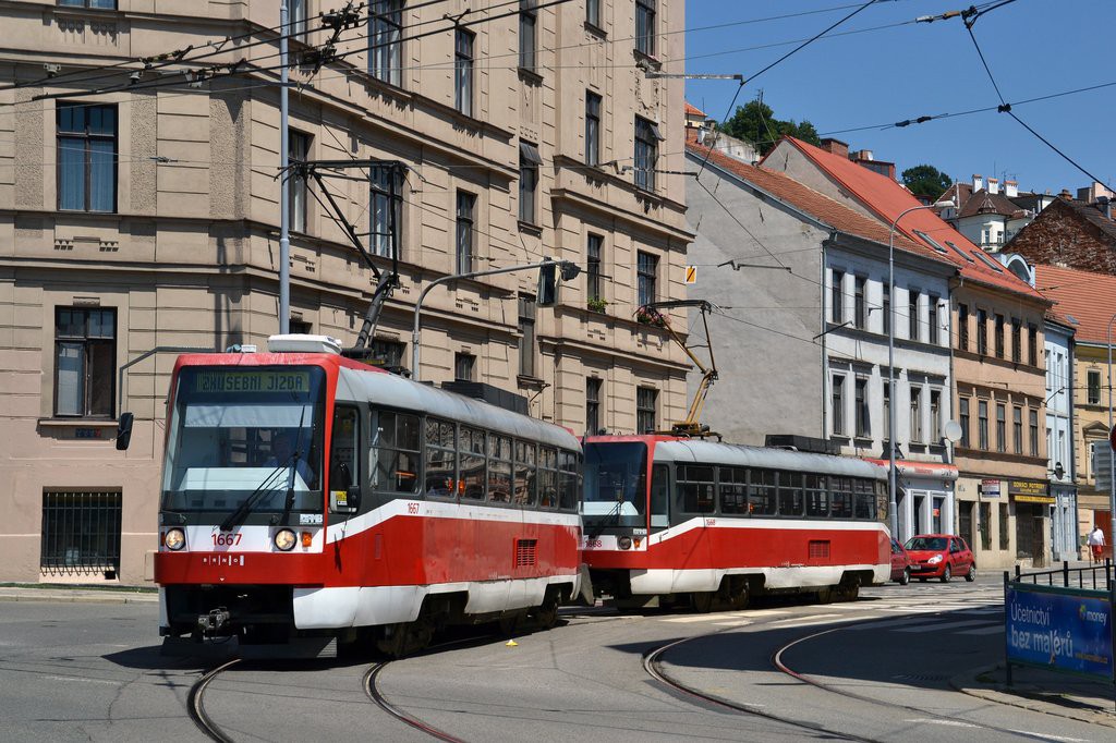 Fotografie ČKD DS T3R 1667 DPMB | ČKD DS T3R 1668 DPMB | Brno-Staré Brno, Pekařská | Fotogalerie BMHD