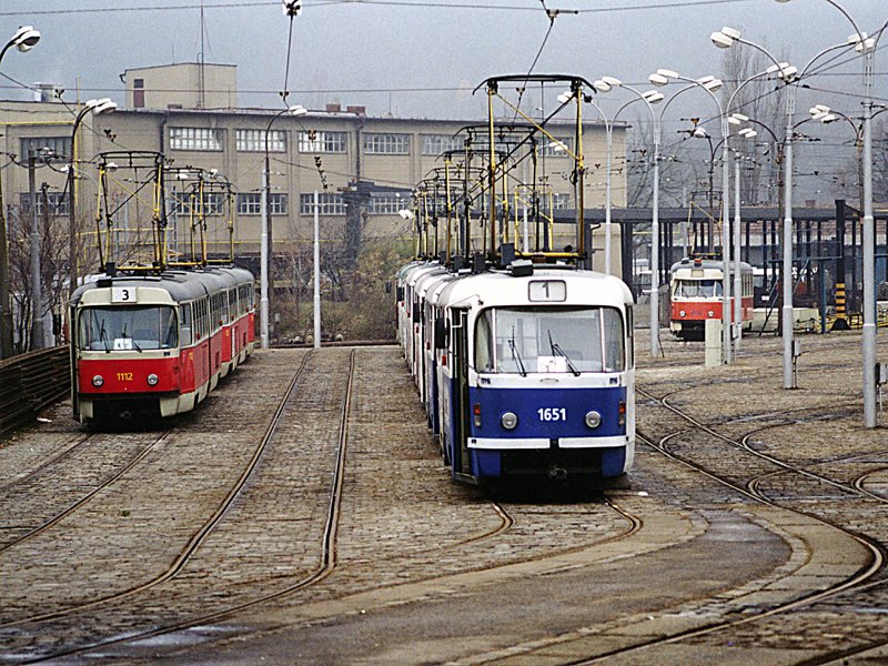 Fotografie ČKD Tatra T3G 1651 DPMB | ČKD Tatra K2 1112 DPMB | Brno-Pisárky, vozovna Pisárky | Fotogalerie BMHD
