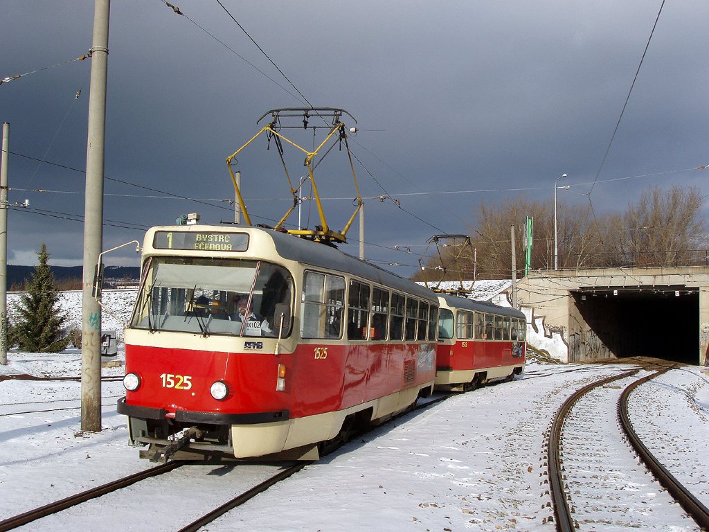Fotografie ČKD Tatra T3 1525 DPMB | ČKD Tatra T3 1528 DPMB | Brno-Bystrc, Rakovecká | Fotogalerie BMHD