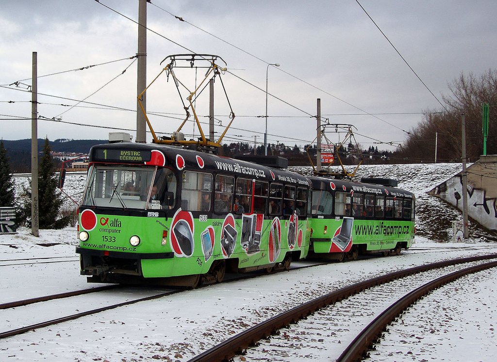 Fotografie ČKD Tatra T3M 1533 DPMB | ČKD Tatra T3M 1534 DPMB | Brno-Bystrc, Rakovecká | Fotogalerie BMHD