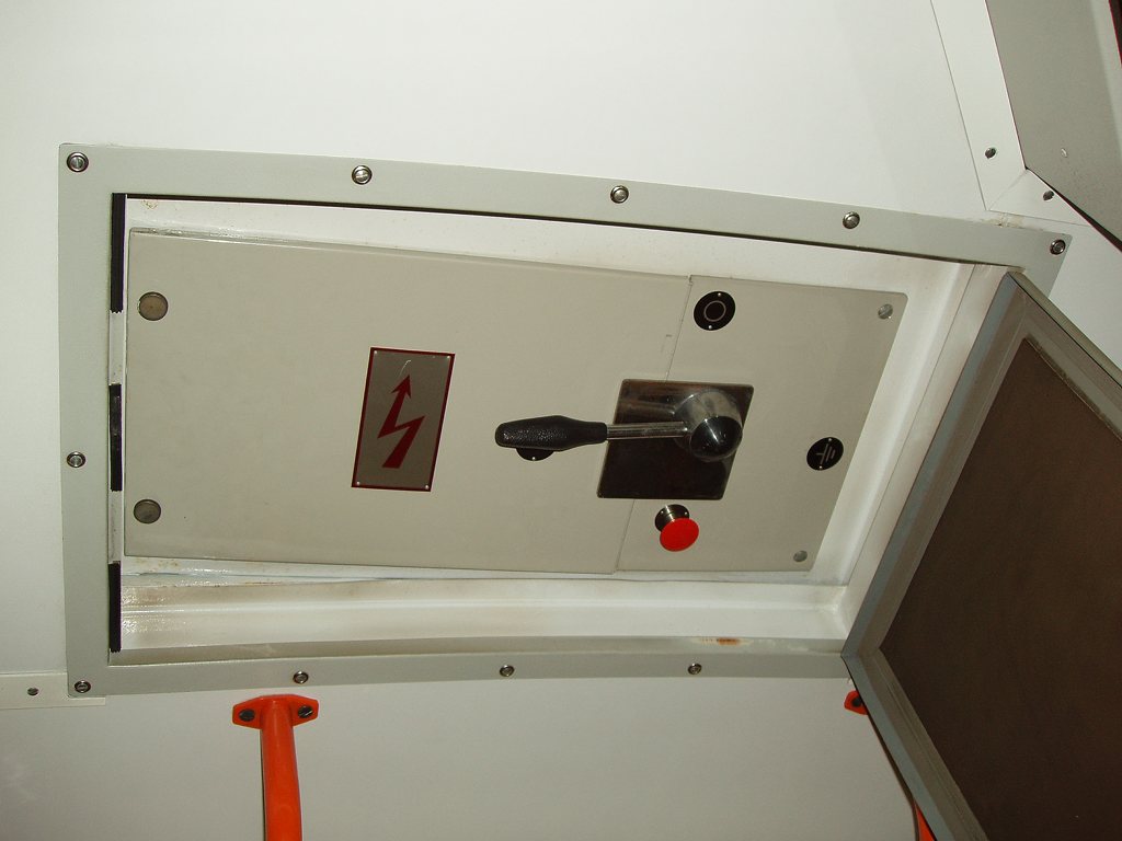 hlavní vypínač 600V ve stropě za kabinou řidiče