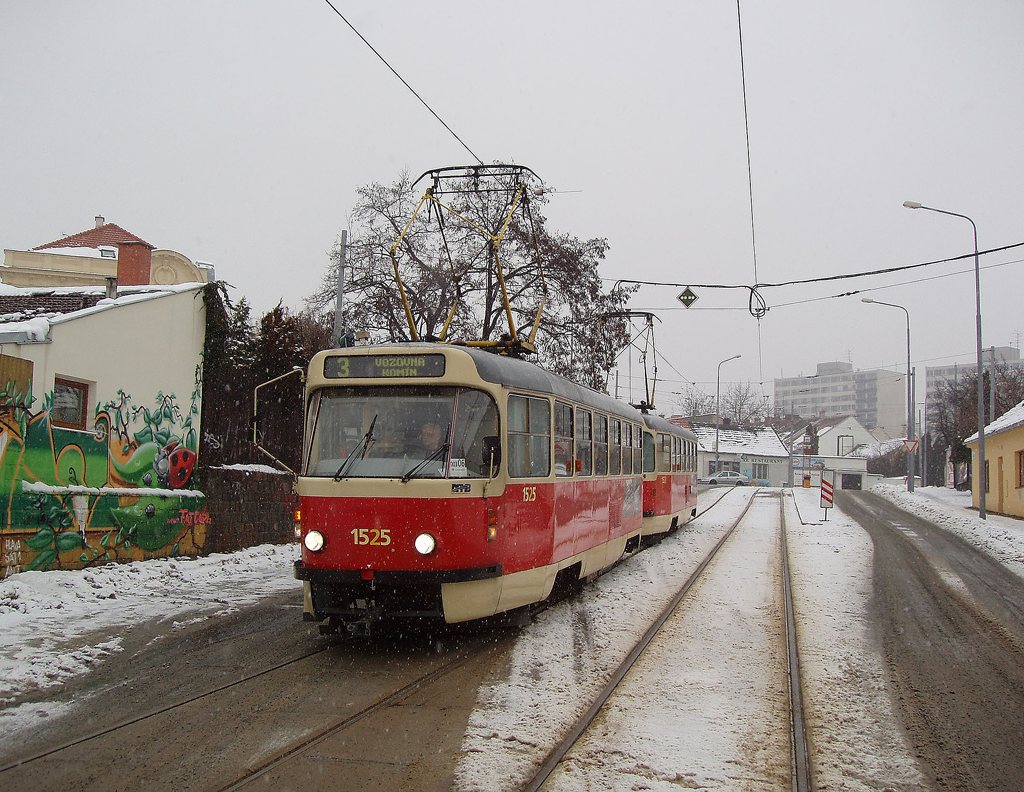 Fotografie ČKD Tatra T3 1525 DPMB | ČKD Tatra T3 1528 DPMB | Brno-Žabovřesky, Sochorova | Fotogalerie BMHD