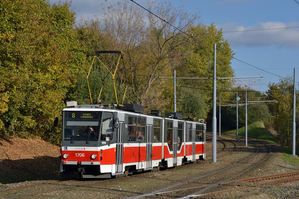 Fotografie ČKD Tatra KT8D5R.N2 1706 DPMB | Brno-Juliánov, Ostravská | Fotogalerie BMHD