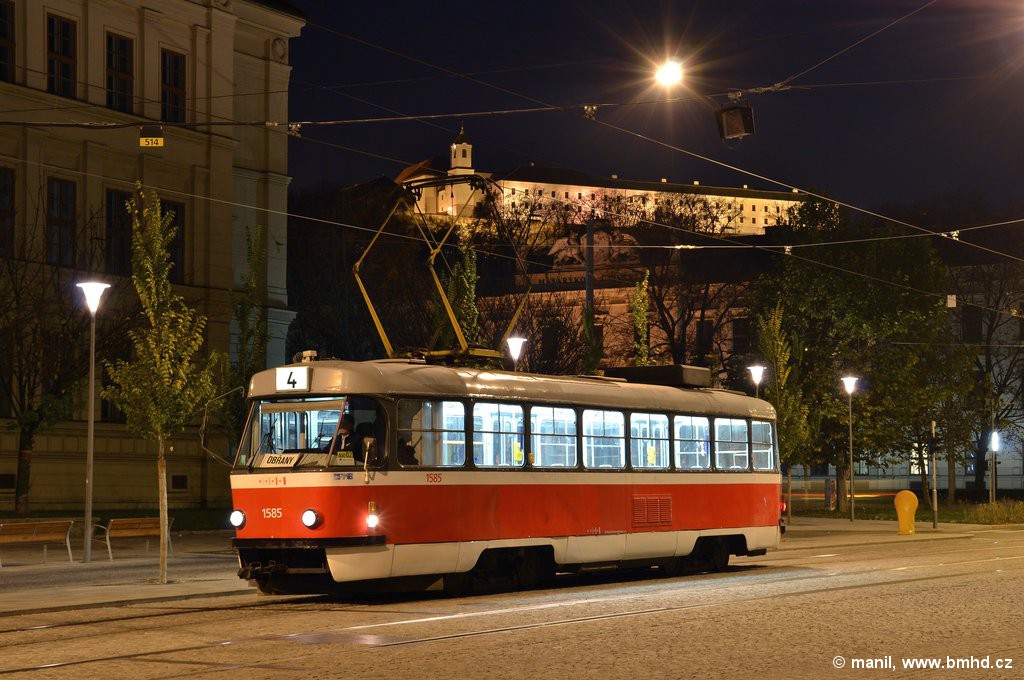 T3M 1585 na noční jízdě pro organizační a tvůrcovský tým BMHD.cz