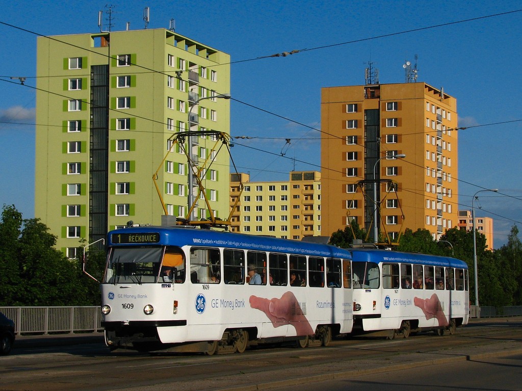Fotografie ČKD Tatra T3G 1609 DPMB | ČKD Tatra T3G 1621 DPMB | Brno-Královo Pole, Palackého třída | Fotogalerie BMHD