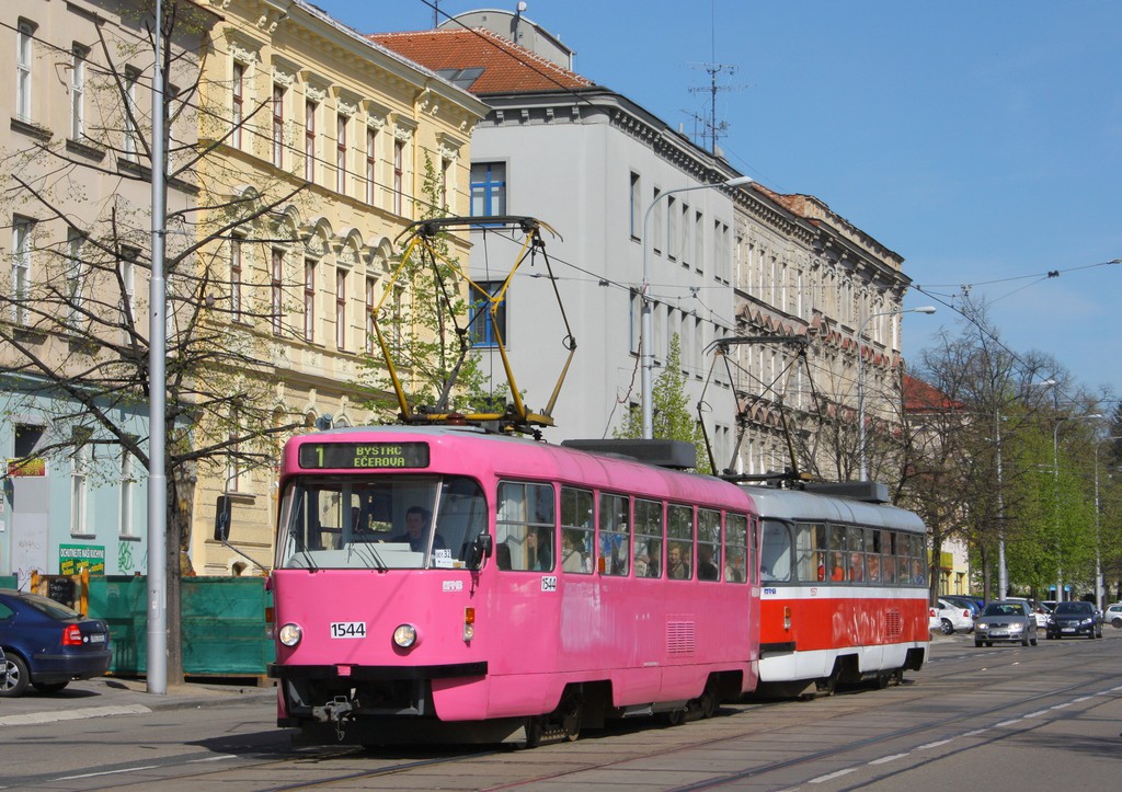 Fotografie ČKD Tatra T3M 1544 DPMB | ČKD Tatra T3M 1557 DPMB | Brno-Ponava, Štefánikova | Fotogalerie BMHD