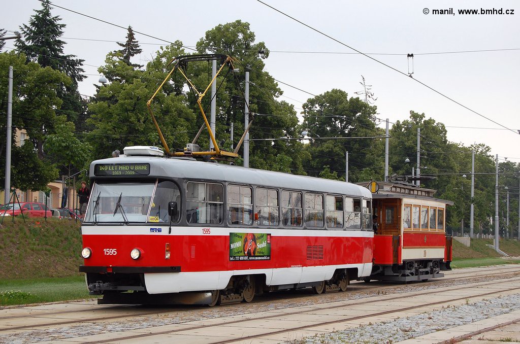 mv1 10, která představuje nejstarší elektrickou tramvaj v Brně, musela být na oslavách 140 let MHD v Brně vždy tažena tramvají T3. Sice je plně funkční, ale byla vyrobena na nižší napětí, než je využíváno nyní.
