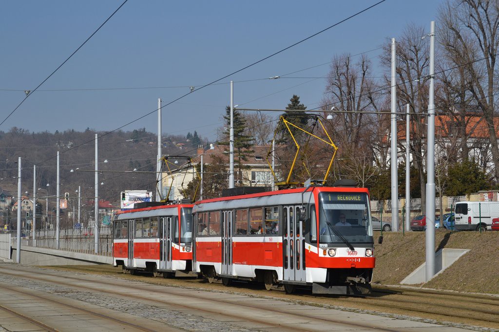 Fotografie ČKD DS T3RF 1669 DPMB | ČKD DS T3RF 1670 DPMB | Brno-Pisárky, Hlinky | Fotogalerie BMHD
