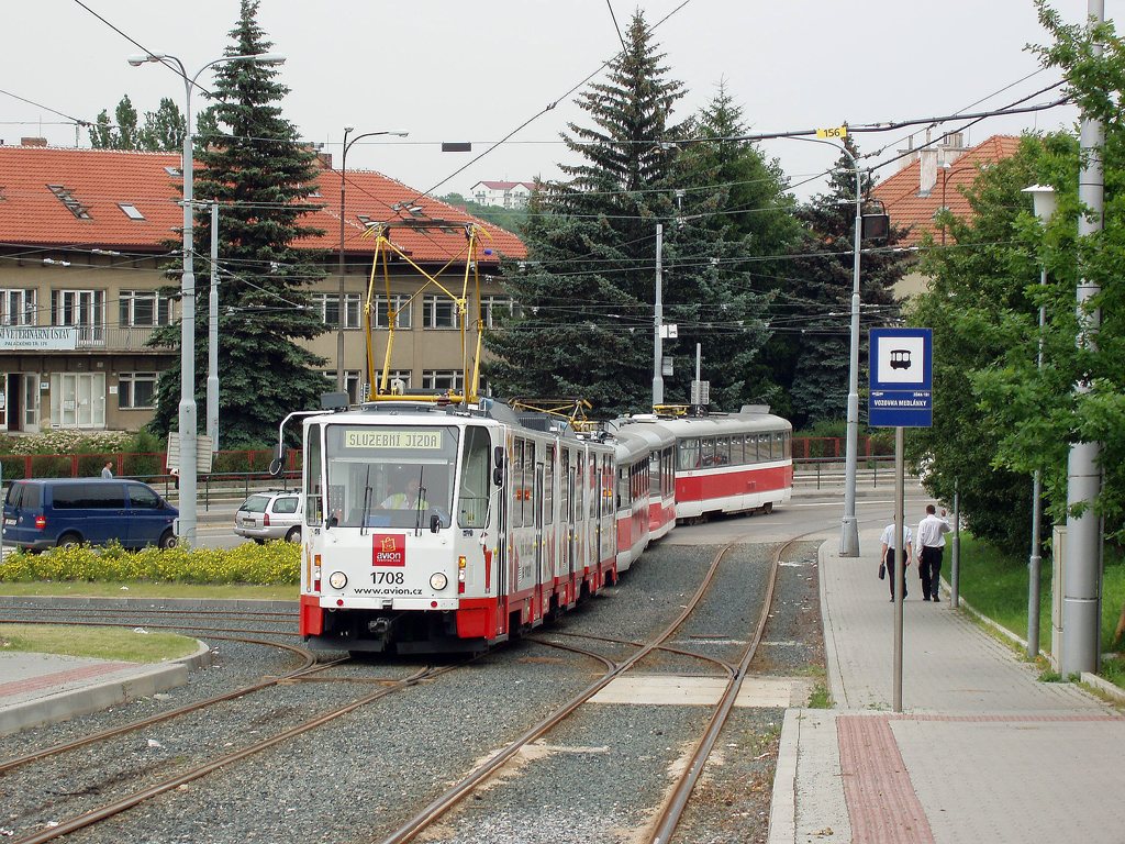 Fotografie ČKD Tatra KT8D5 1708 DPMB | Pragoimex T3R.EV 1531/II DPMB | Pragoimex VV60LF 1301/II DPMB | Pragoimex T3R.EV 1569/II DPMB | Brno-Medlánky, Hudcova | Fotogalerie BMHD