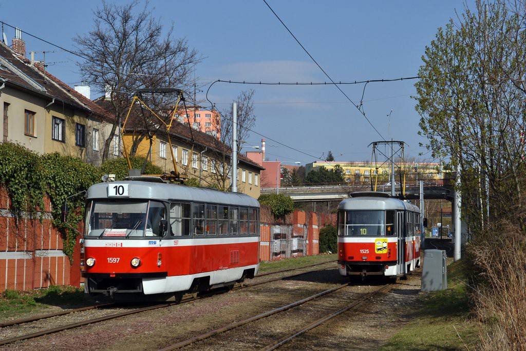 Fotografie ČKD Tatra T3 1597 DPMB | ČKD Tatra T3 1525 DPMB | Brno-Židenice, Nezamyslova | Fotogalerie BMHD
