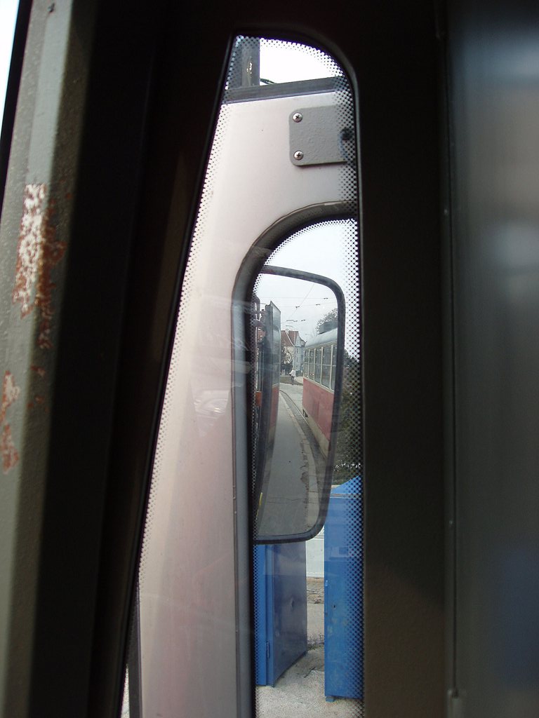 pohled do pravého zrcátka při otevřených dveřích