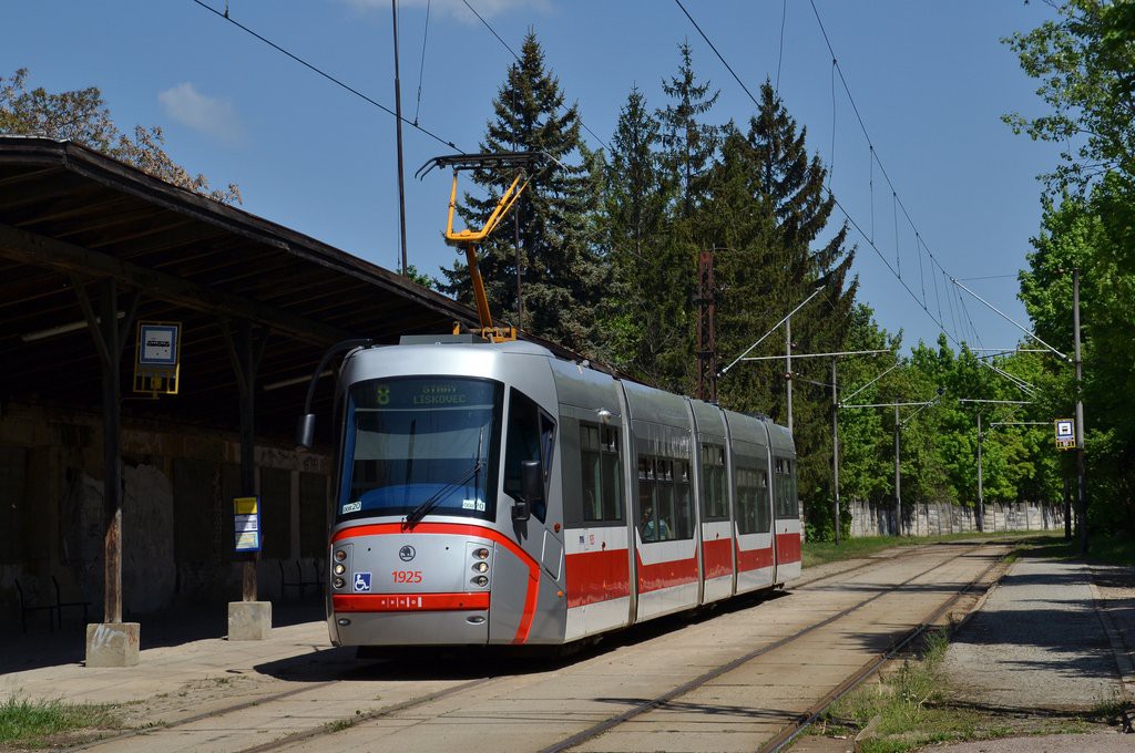 Při výluce tramvají do Líšně v sobotu 8.5.2012 byla linka 8 ukončena na Stránské skále a bylo možné nasazení jednosměrných vozidel.