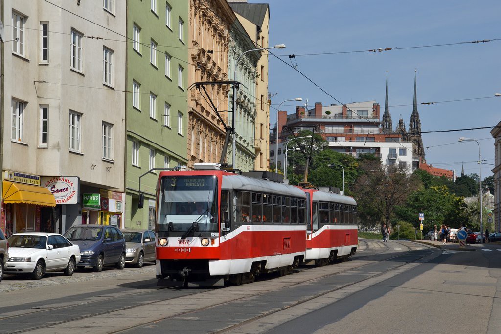 Fotografie ČKD DS T3R 1667 DPMB | ČKD DS T3R 1668 DPMB | Brno-Staré Brno, Pekařská | Fotogalerie BMHD