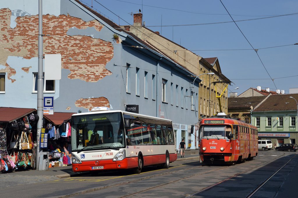 Fotografie Irisbus Citelis 12M 7638 (3B9 8343) DPMB | ČKD Tatra K2P 1023 DPMB | Brno-Staré Brno, Václavská | Fotogalerie BMHD