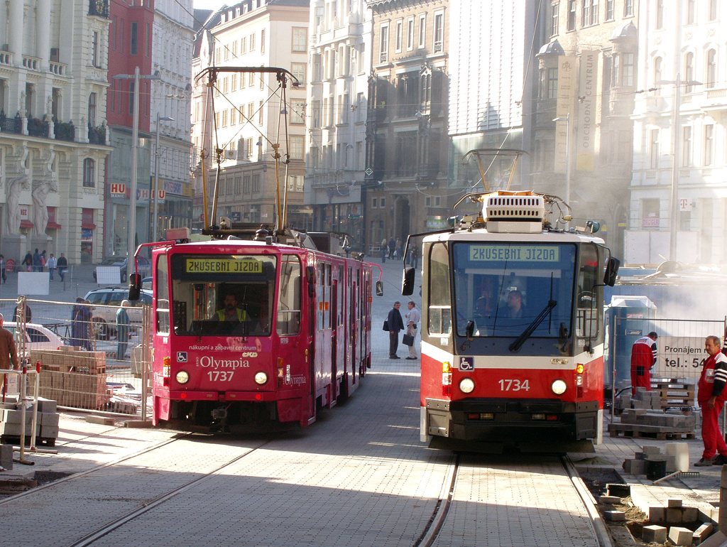 Fotografie ČKD Tatra KT8D5N 1734 DPMB | ČKD Tatra KT8D5R.N2 1737 DPMB | Brno-střed, náměstí Svobody | Fotogalerie BMHD