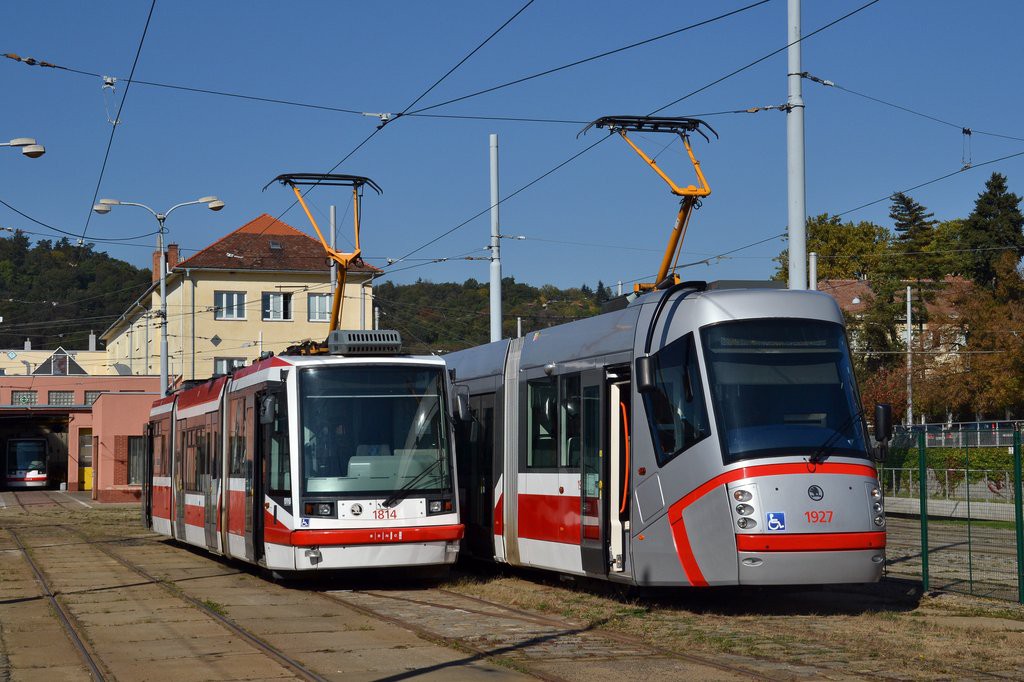 Fotografie Škoda 03T6 1814 DPMB | Škoda 13T5 1927 DPMB | Brno-Pisárky, Vozovna Pisárky | Fotogalerie BMHD
