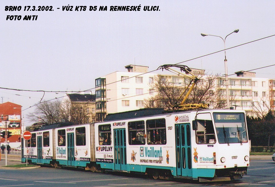 Fotografie ČKD Tatra KT8D5 1707 DPMB | Brno-Staré Brno, Poříčí | Fotogalerie BMHD