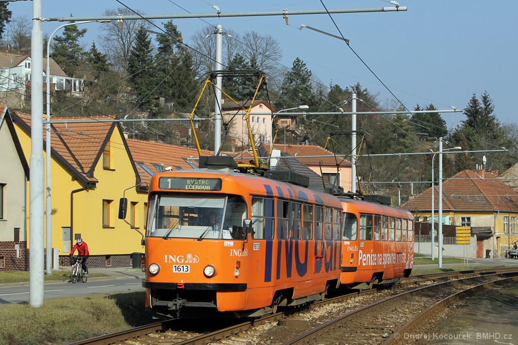 Fotografie ČKD Tatra T3G 1613 DPMB | ČKD Tatra T3G 1614 DPMB | Brno-Komín, Bystrcká | Fotogalerie BMHD