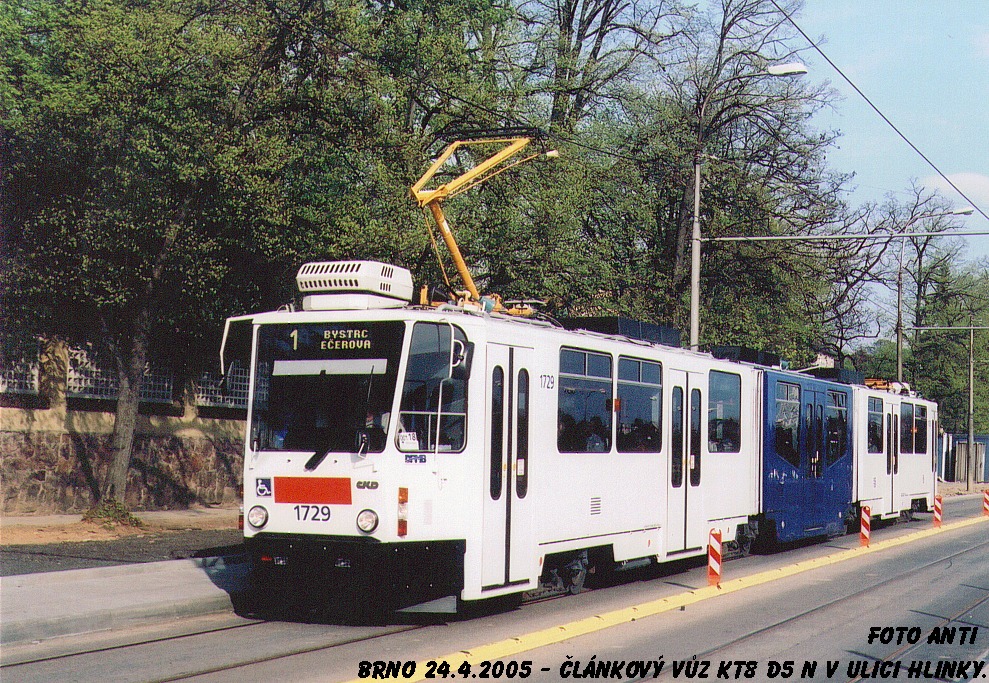 Fotografie ČKD Tatra KT8D5N 1729 DPMB | Brno-Pisárky, Hlinky | Fotogalerie BMHD