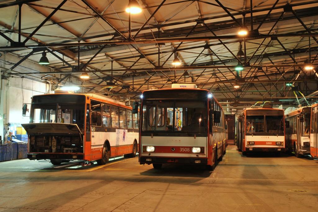 Fotografie Škoda 14 TrR 3257 DPMB | Škoda 15 TrM 3508 DPMB | Škoda 14 Tr14 3260 DPMB | Brno-Husovice, vozovna Husovice | Fotogalerie BMHD