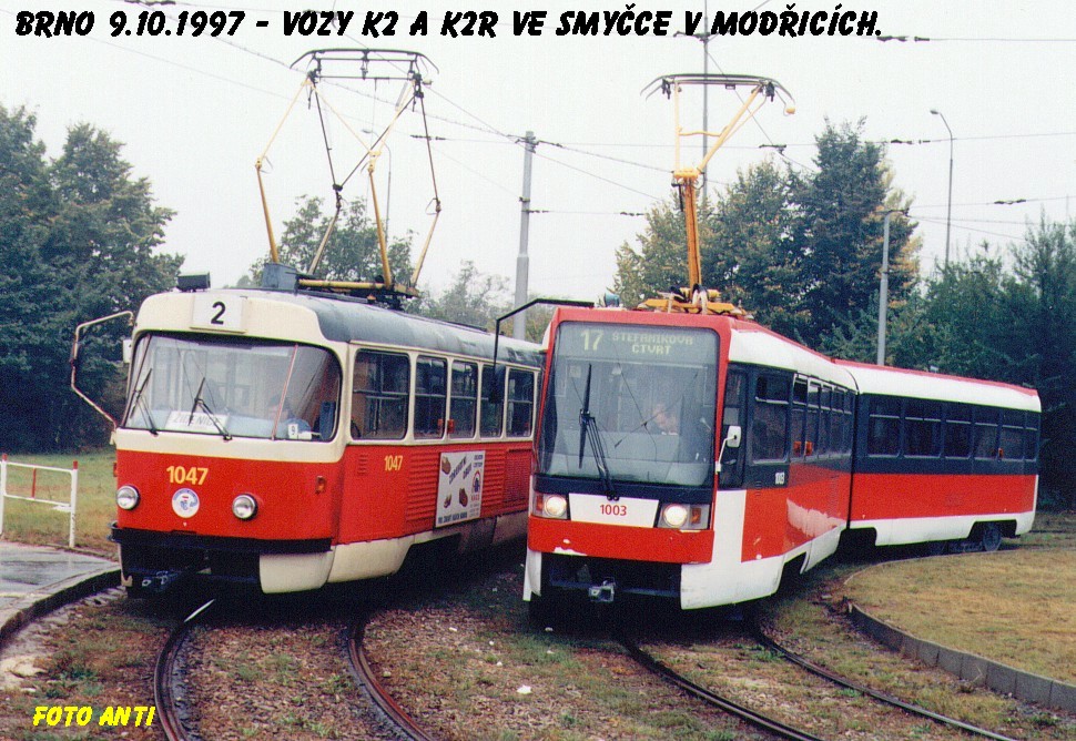Fotografie ČKD Tatra K2R 1003 DPMB | ČKD Tatra K2 1047 DPMB | Modřice | Fotogalerie BMHD