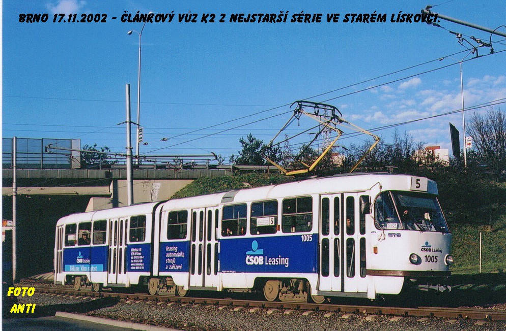 Fotografie ČKD Tatra K2 1005 DPMB | Brno-Starý Lískovec, Jemelkova | Fotogalerie BMHD