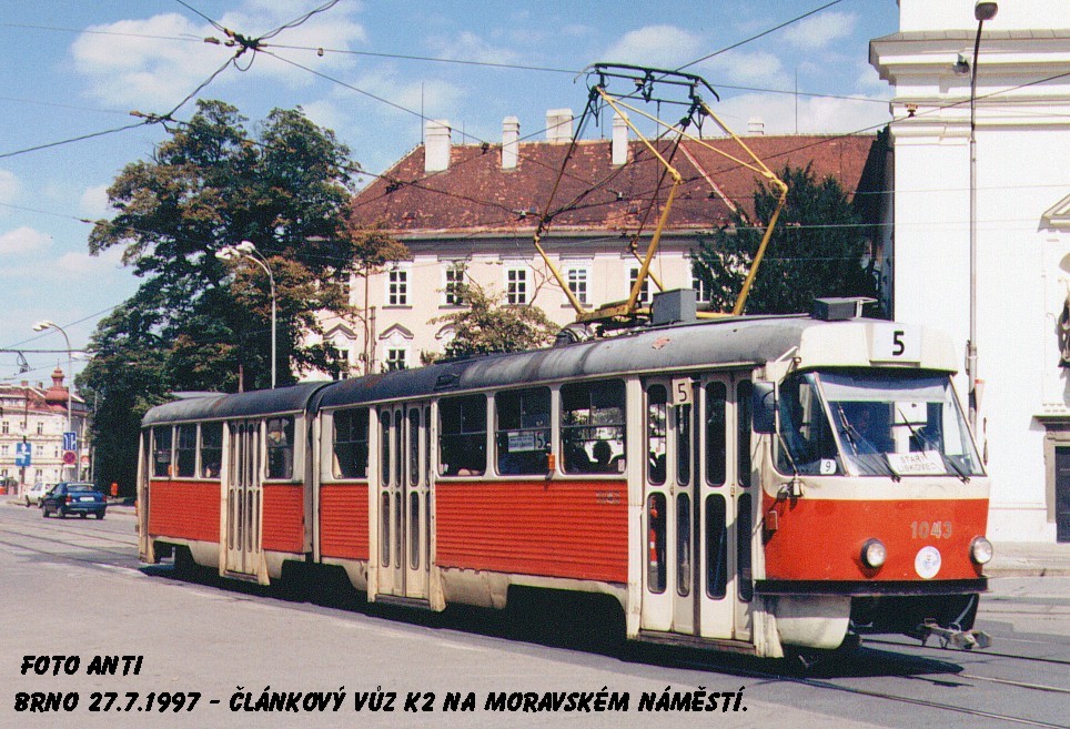 Fotografie ČKD Tatra K2 1043 DPMB | Brno-střed, Moravské náměstí | Fotogalerie BMHD