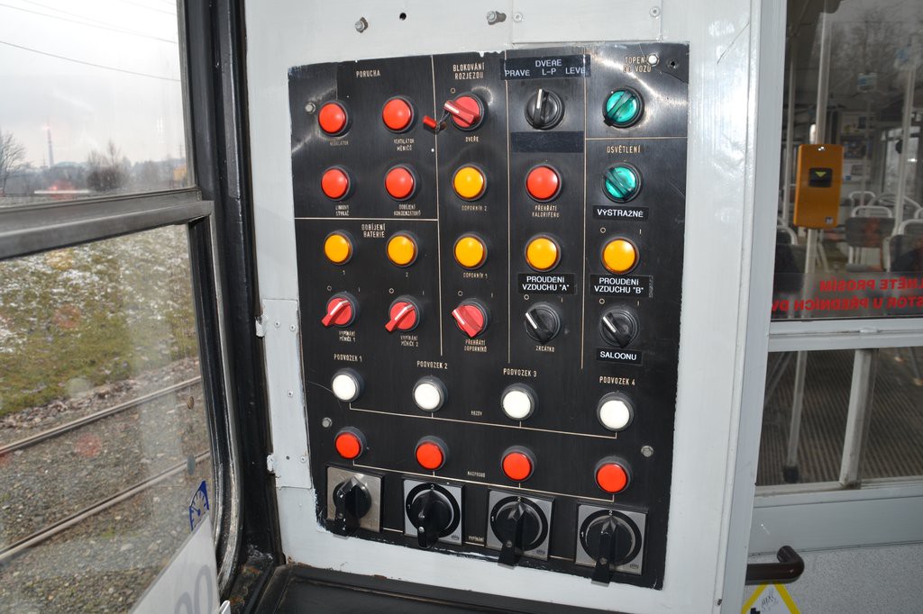 zadní panel v kabině řidiče toho času poslední vysokopodlažní KT8D5 v Brně