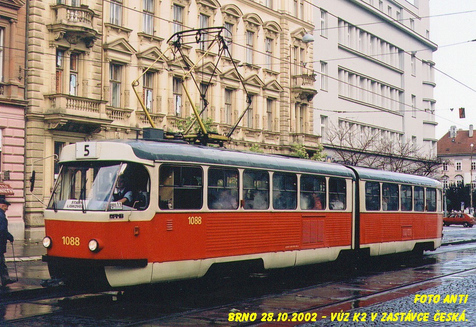 Fotografie ČKD Tatra K2 1088 DPMB | Brno-střed, Joštova | Fotogalerie BMHD
