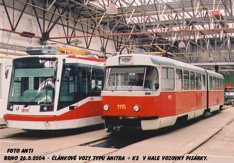 Fotografie ČKD Tatra K2 1115 DPMB | Škoda 03T6 1814 DPMB | Brno-Pisárky, Vozovna Pisárky | Fotogalerie BMHD