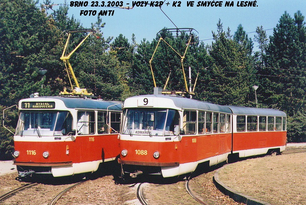 Fotografie ČKD Tatra K2P 1116 DPMB | ČKD Tatra K2 1088 DPMB | Brno-Lesná | Fotogalerie BMHD