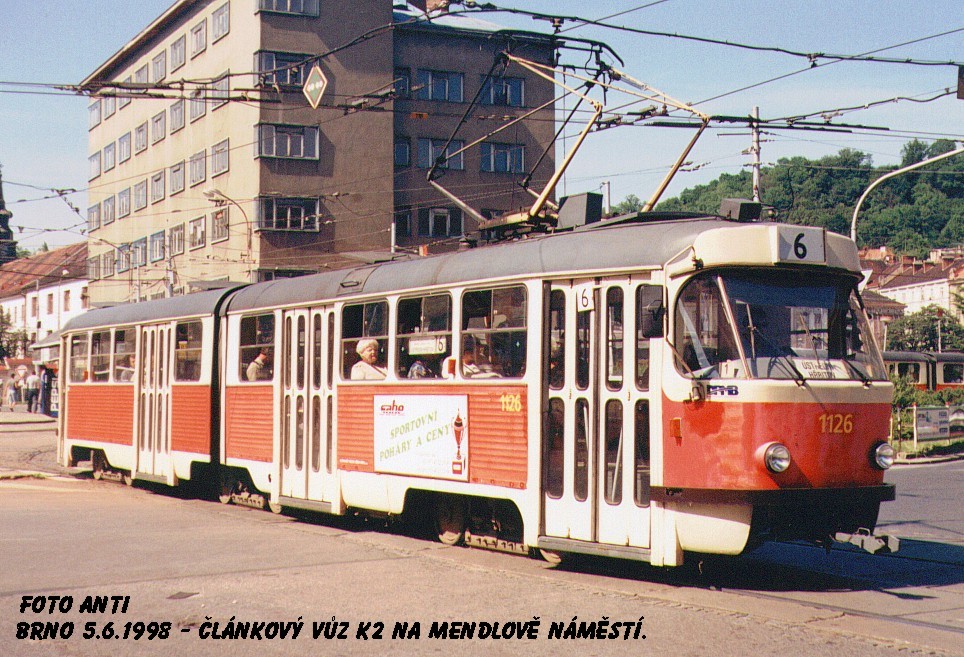 Fotografie ČKD Tatra K2 1126/II DPMB | Brno-Staré Brno, Mendlovo náměstí | Fotogalerie BMHD