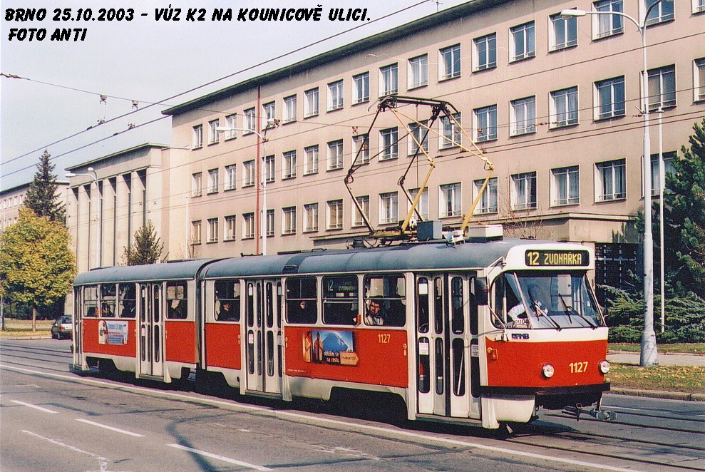 Fotografie ČKD Tatra K2 1127/II DPMB | Brno-střed, Kounicova | Fotogalerie BMHD