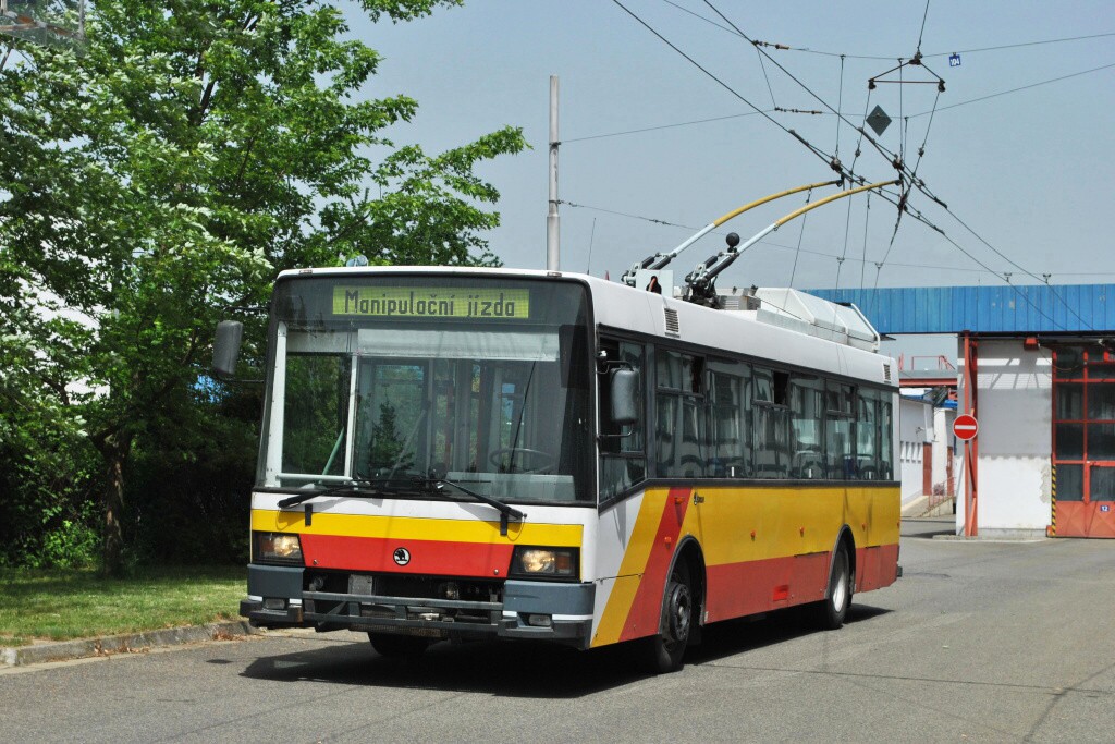 trolejbus 3057 druhý den po přivezení z Hradce Králové v areálu vozovny Komín